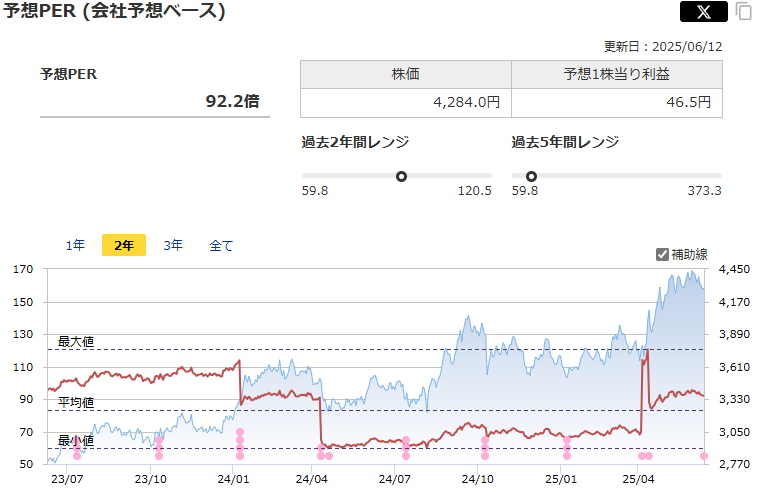 PERは92倍とかなり割高。