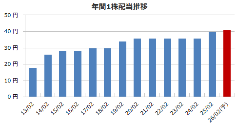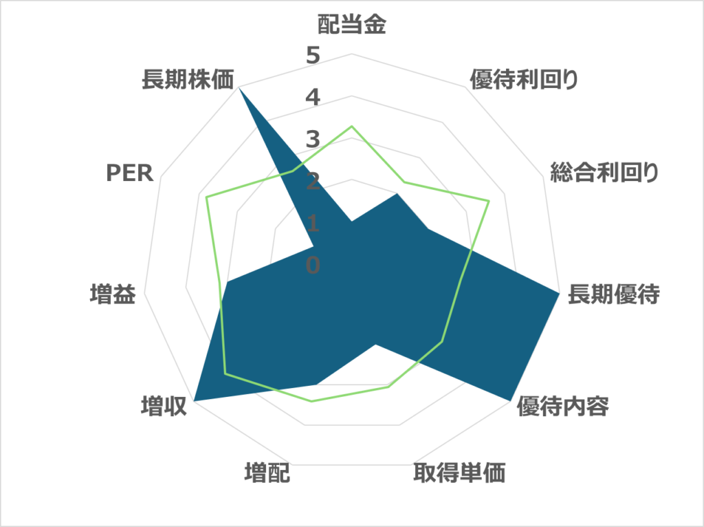 | 優待投資評価 | ★★★☆☆65pt | 1株配当(予想) | 41円 |