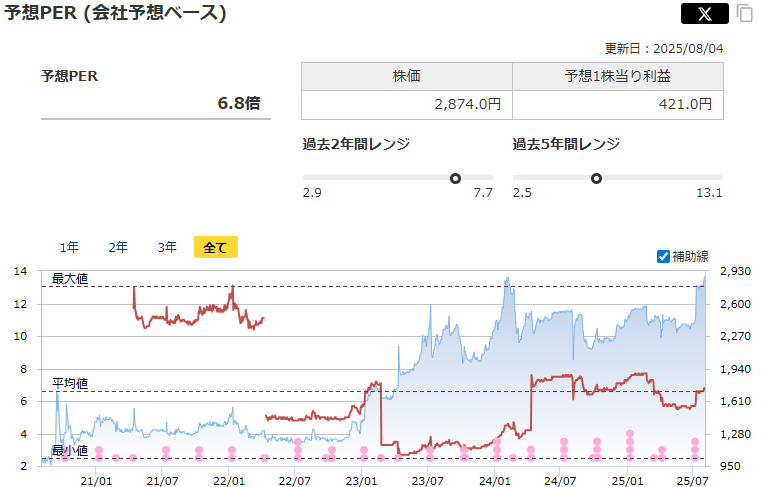 PERは6.8倍とかなり割安な水準。