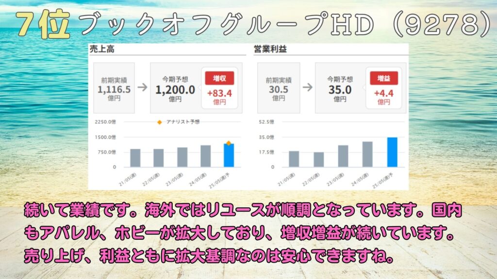 続いて業績です。海外ではリユースが順調となっています。国内もアパレル、ホビーが拡大しており、増収増益が続いています。