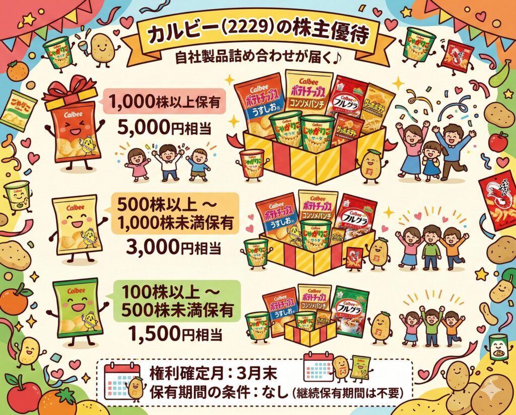 100株でも500株でも、箱を開けた時のじゃがいもの香りは最高だよ!2026年は配当も優待もダブルで嬉しい年。原材料費の波を乗り越えて、さらに美味しいお菓子を届けてくれるのを応援していこう
