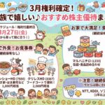 - 500株(約80万〜100万円規模)まで買い増すと、優待券の代わりに**「特選ギフト(佃煮セットや明太子など)」**を選べるようになります。これなら全国どこに住んでいても銚子丸の味を楽しめます。