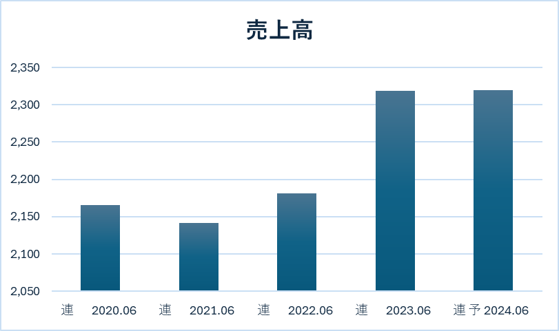 売り上げ横ばい減益、増配。