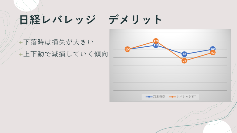 よくレバレッジ関連で出てくるのが上下を繰り返すと指数が元の価格に戻っても