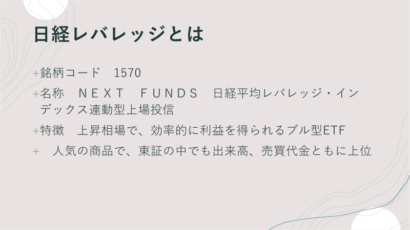 正式名称は、NEXT FUNDS 日経平均レバレッジ・インデックス連動型上場投信
