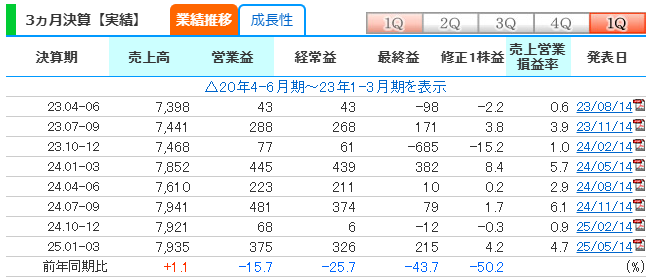 | 優待権利確定月 | 3月9月 | 配当利回り(予想) | 0.24% |