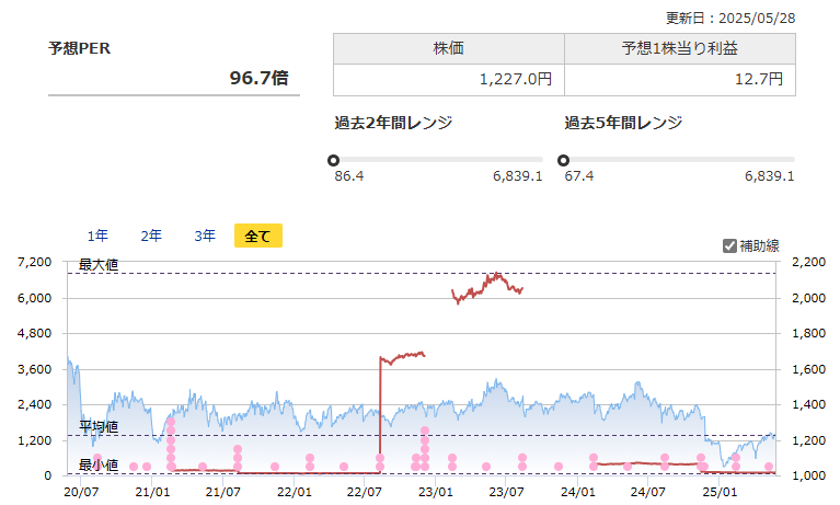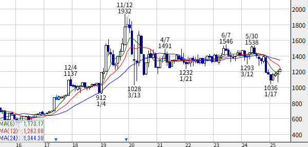 株価は上昇してきていましたが、2019年をピークに調整が続いています。