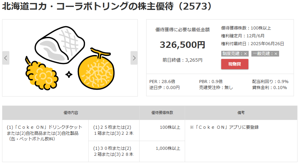 北海道コカ・コーラボトリング(2573)の株主優待 CokeONドリンクチケットや自社製品詰め合わせ