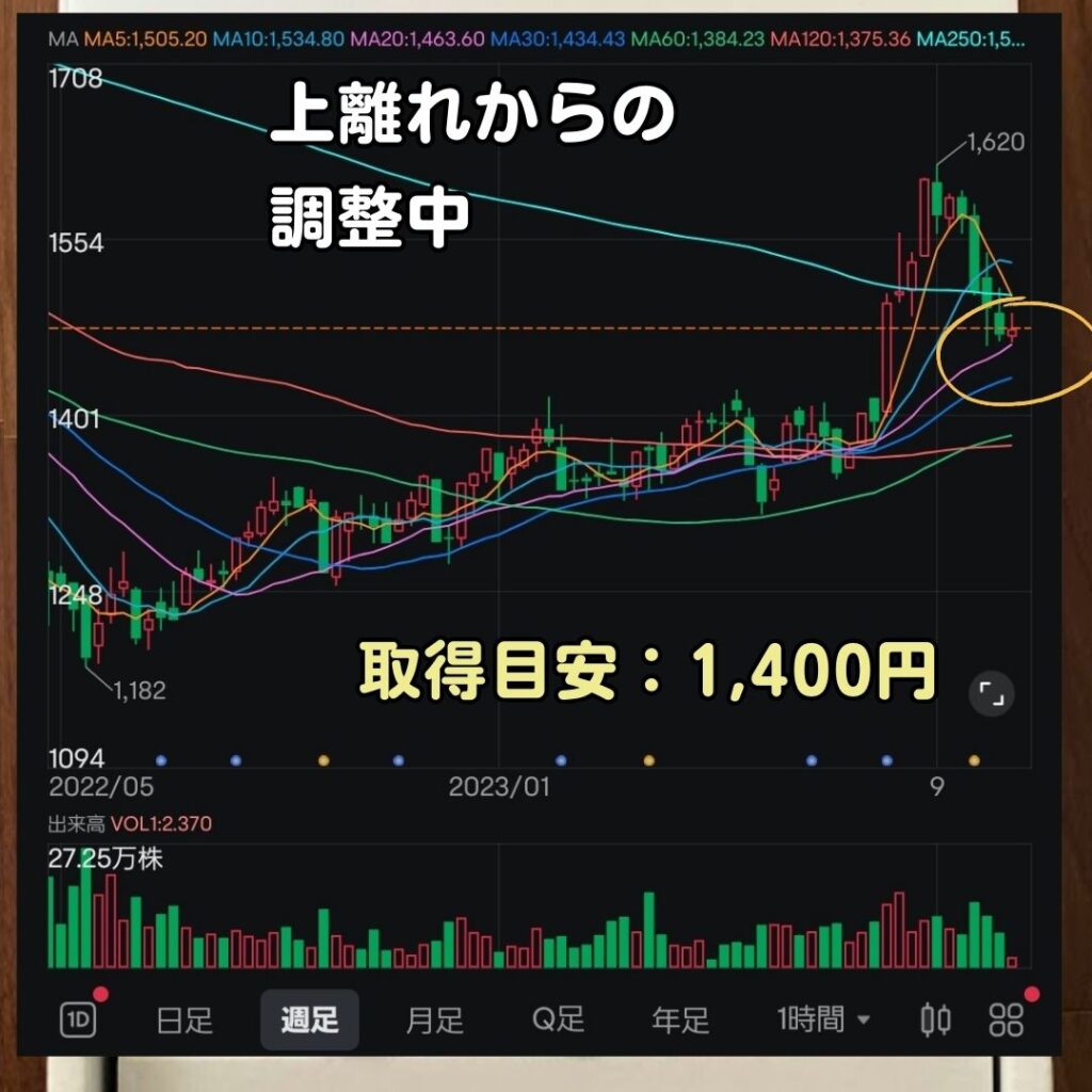 株価は上離れからの調整中⤵️