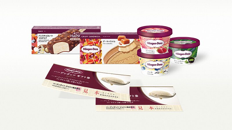 ハーゲンダッツギフト券は1枚でミニカップ・クリスビーサンド・バーのいずれか2個とお引き換え可能な商品券です!