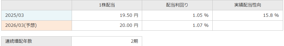 | 総合判定 | ★★★★★ | 1株配当(予想) | 19円 |