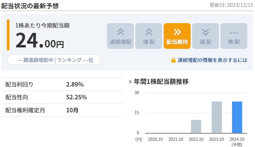 おすすめ度★★★★★1株配当(予想)24円
