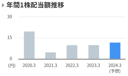 | おすすめ度 | ★★★☆☆ | 1株配当(予想) | 12円 |