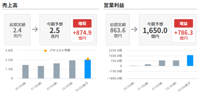 増収増益。大幅な増益。