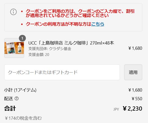 初回限定500円OFFクーポンは、2000円以上の品に使えます。