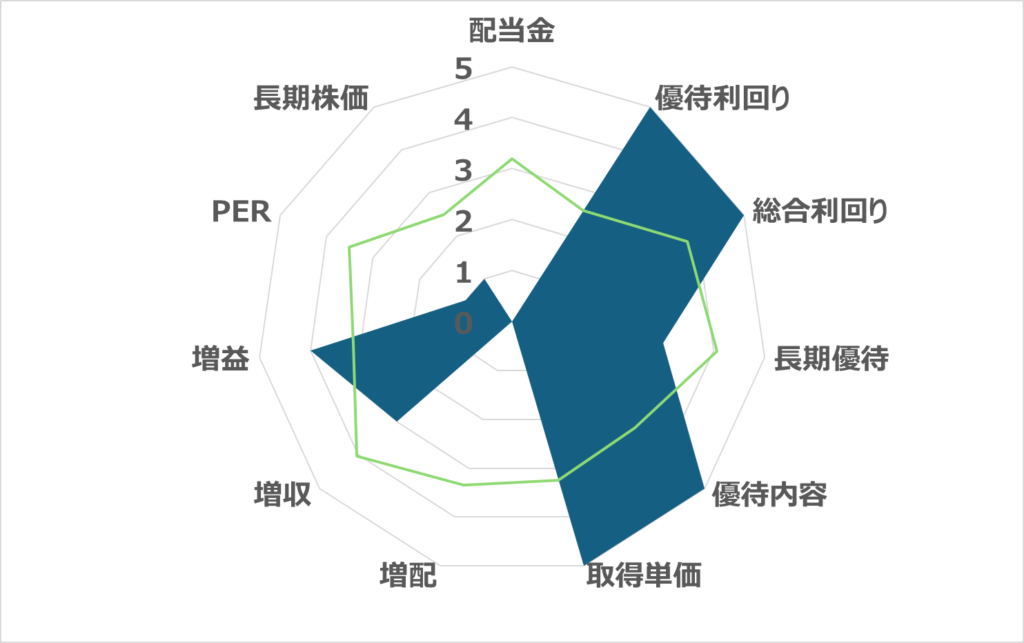 | NISA評価 | ★☆☆☆☆26pt | 優待の価値 | 4,000円 |