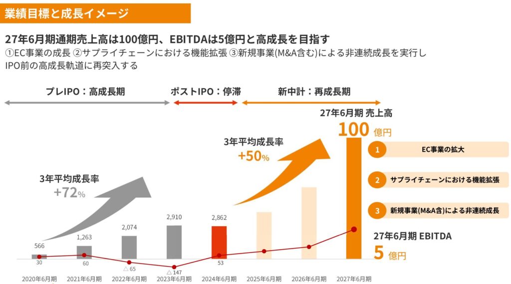年率50%の成長で、27年6月に売上高100億円を目指しています。