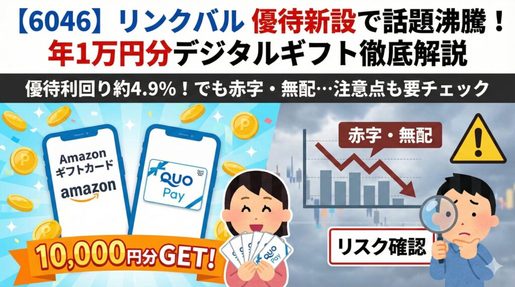 こんにちは!今回は、2026年2月に**「超特大の株主優待新設」を発表して界隈を大いにザワつかせたリンクバル(証券コード:6046)**について解説します。