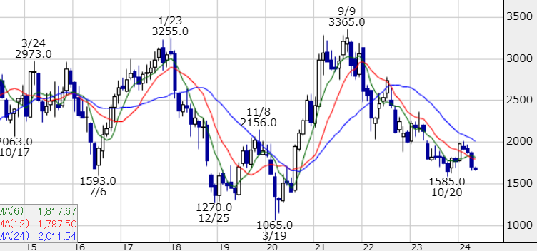 株価は調整中。