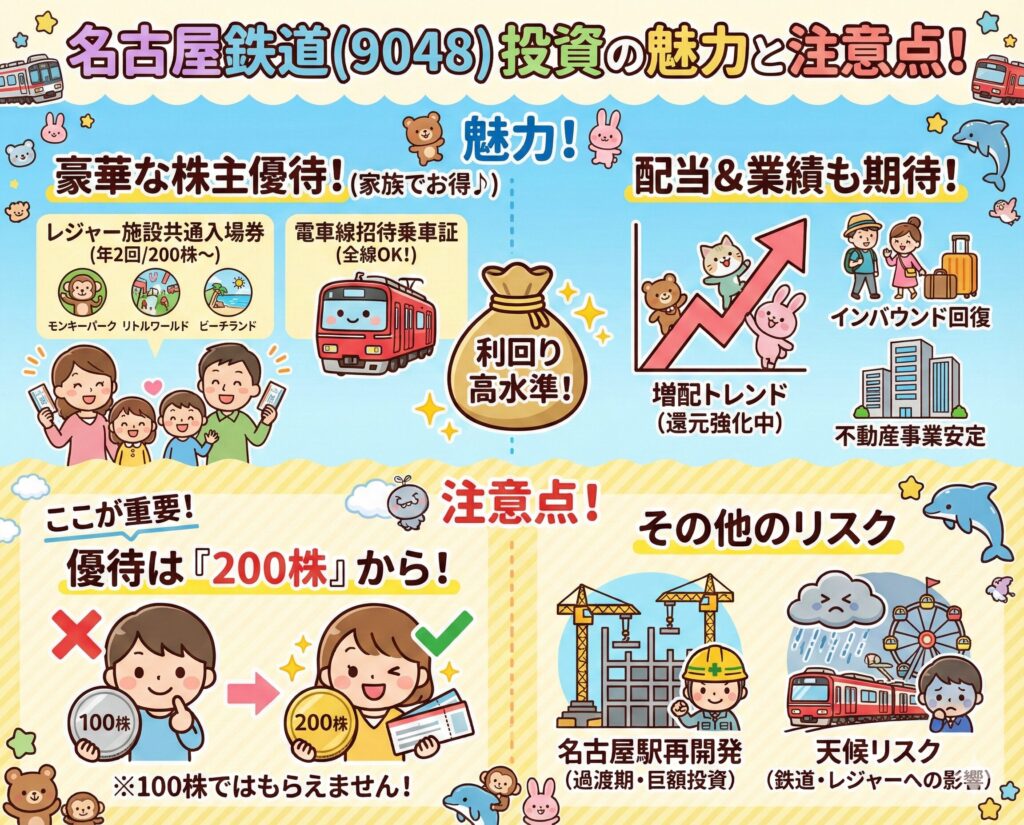 今回は、そんな名鉄の株主優待の全貌から、最新の配当・業績見通し、そして注意点まで徹底解説していきます!