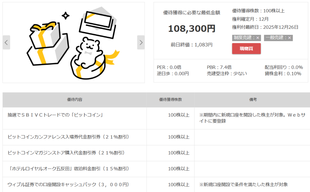 メタプラネット(旧:レッド・プラネット・ジャパン)(3350)の株主優待