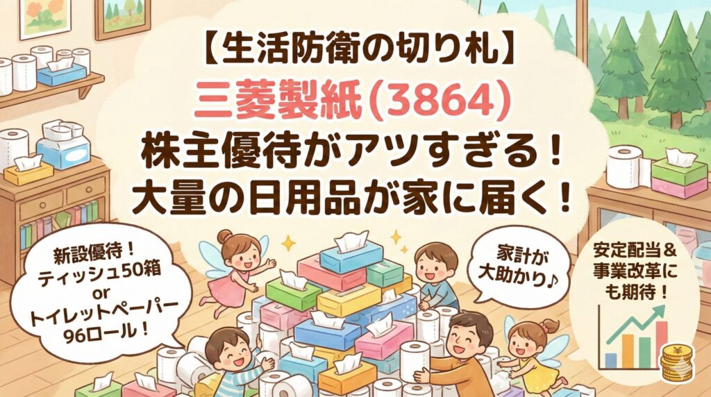 2026年2月中旬、個人投資家界隈をざわつかせるビッグニュースが飛び込んできました。なんと、三菱製紙が待望の「株主優待の新設」を発表したのです。日用品の価格高騰が続く今、家計の強い味方になること間違いなしの銘柄ですが、手放しでおすすめできない「注意すべきポイント」も存在します。