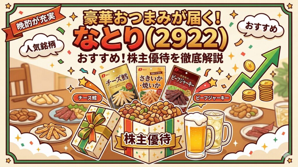 お酒のお供に欠かせない「チーズ鱈」や「ビーフジャーキー」。これらを展開する「なとり」は、個人投資家の間では「届いて嬉しいおつまみ優待」の定番銘柄として非常に高い支持を得ています。