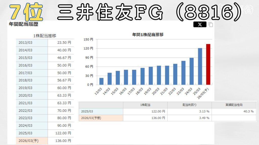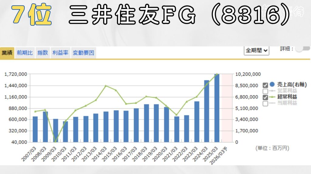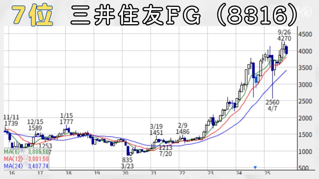 7位は三井住友フィナンシャルグループ。