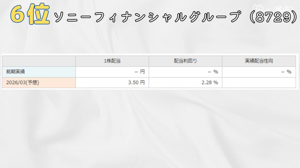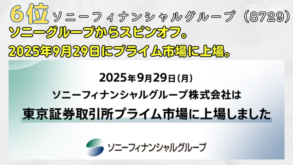 6位は、ソニーフィナンシャルグループ。