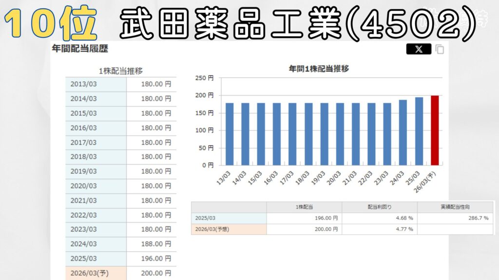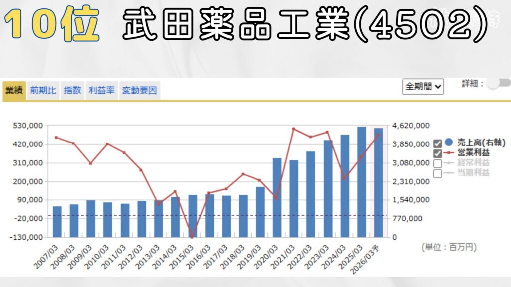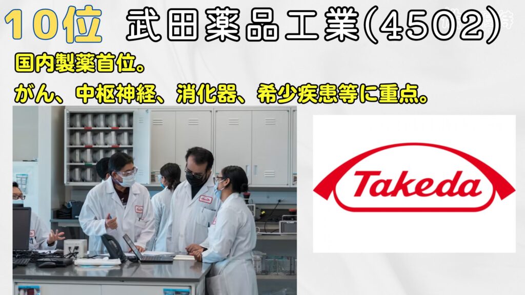 10位は武田薬品工業。