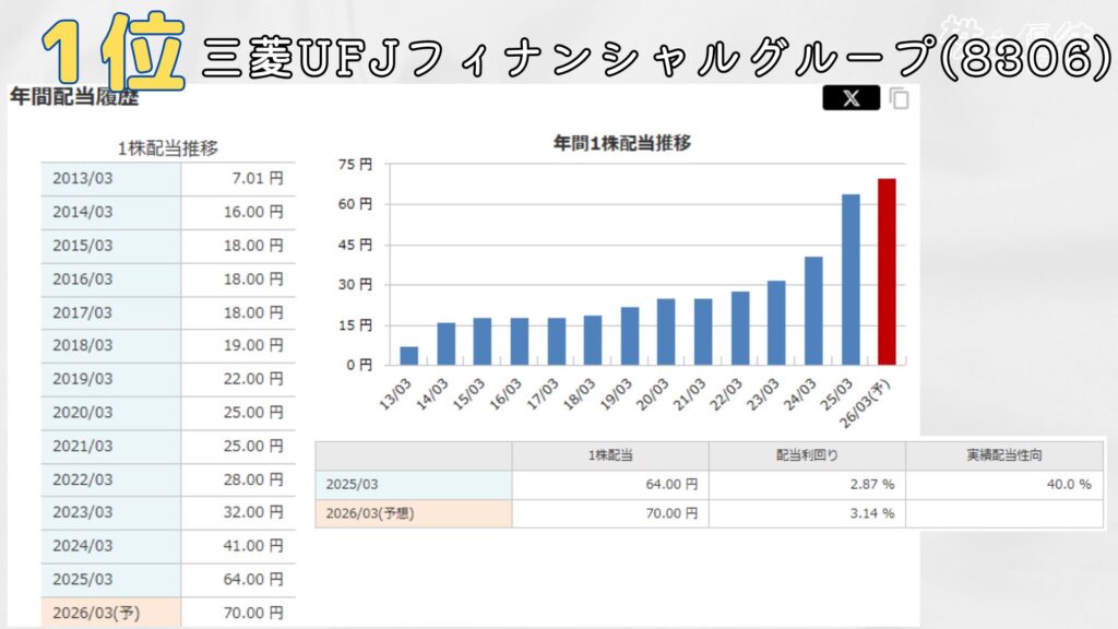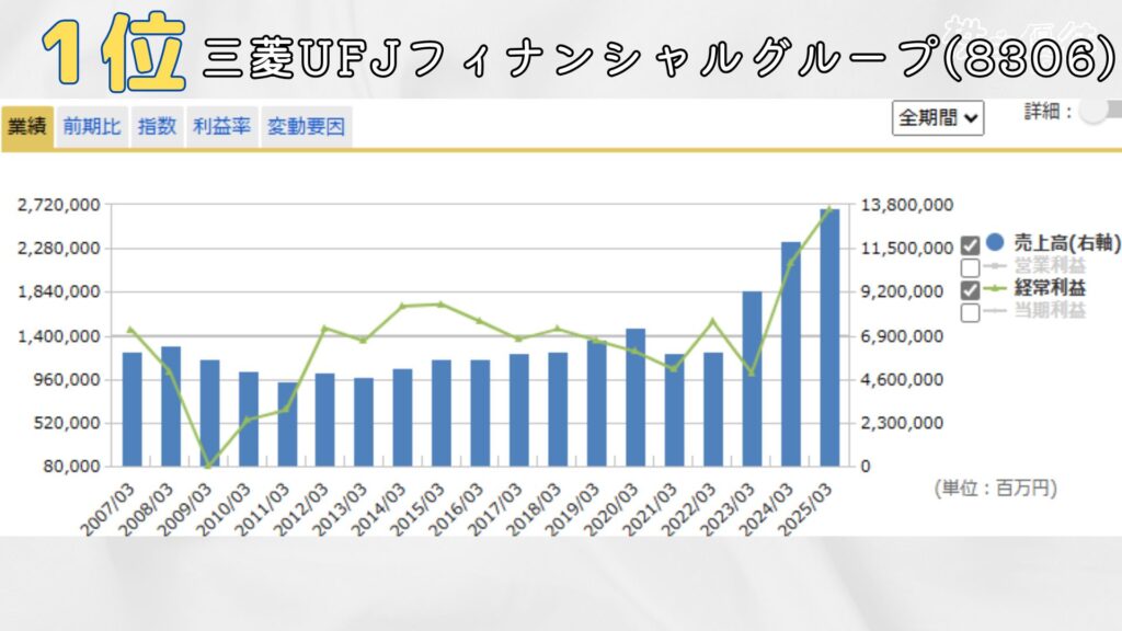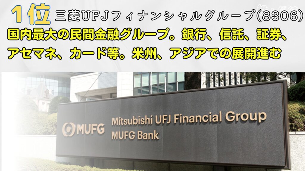 堂々の1位は、三菱UFJフィナンシャルグループ。