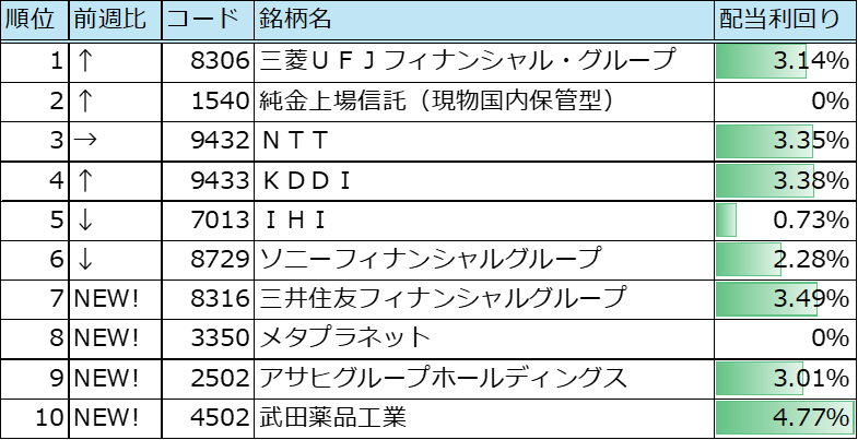 配当利回りが株価を下支えしてくれてるね。