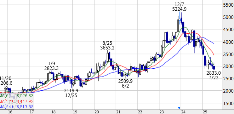 2023年末をピークに調整が続いてる。