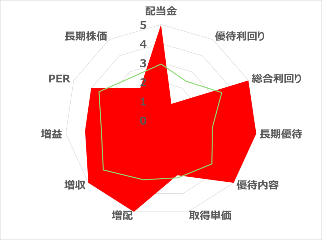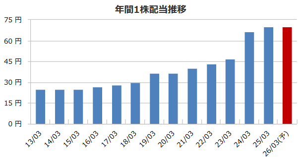 | 優待投資評価 | ★★★★★86pt | 1株配当(予想) | 70円 |