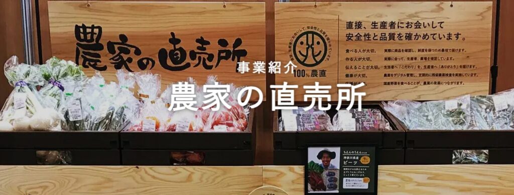 野菜・果物の直売所事業が主柱。全国の生産者から農産物を集荷し、スーパーなど小売店で販売