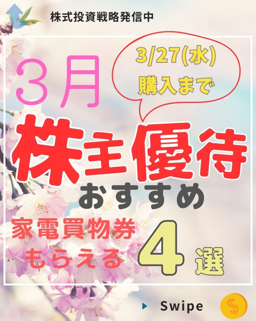 2024年3月権利確定、家電の買い物券がもらえる株主優待を紹介します✨🎁✨