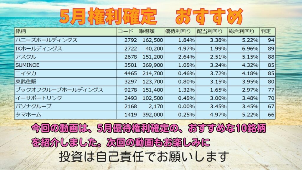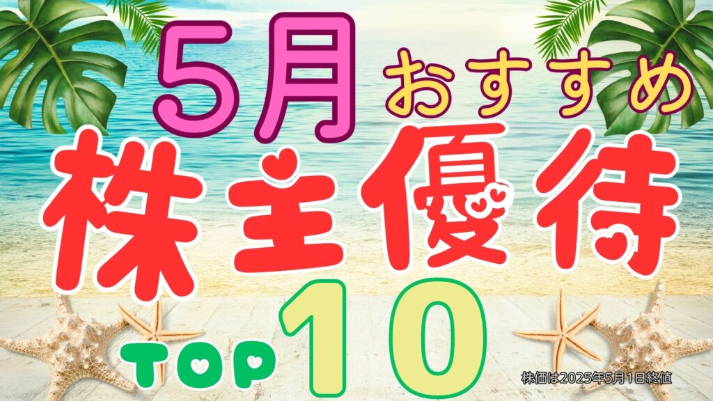 5月優待権利確定の株主優待銘柄、トップ10を紹介します。
