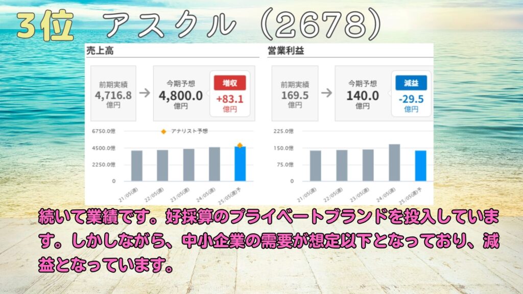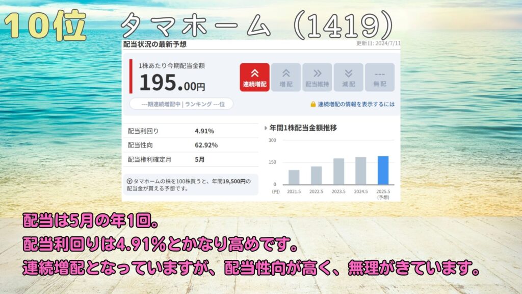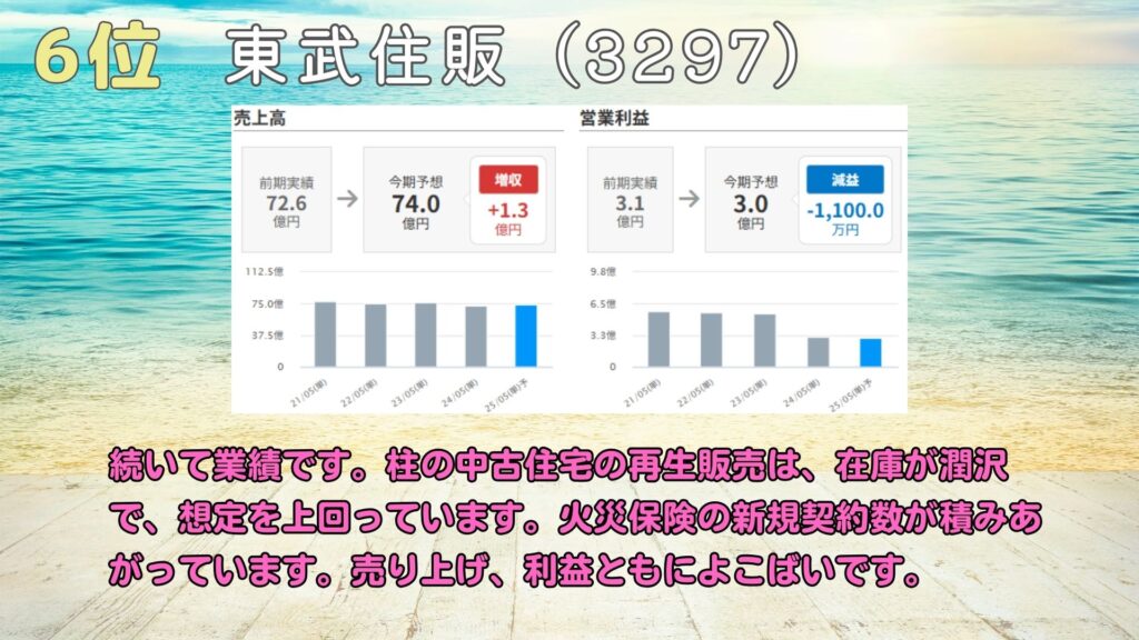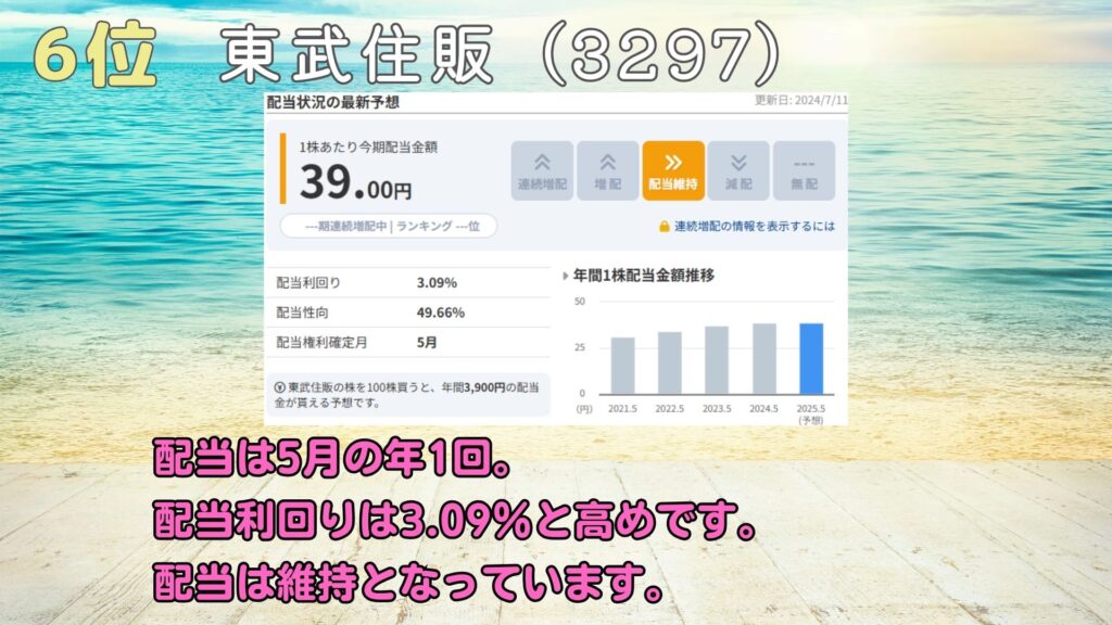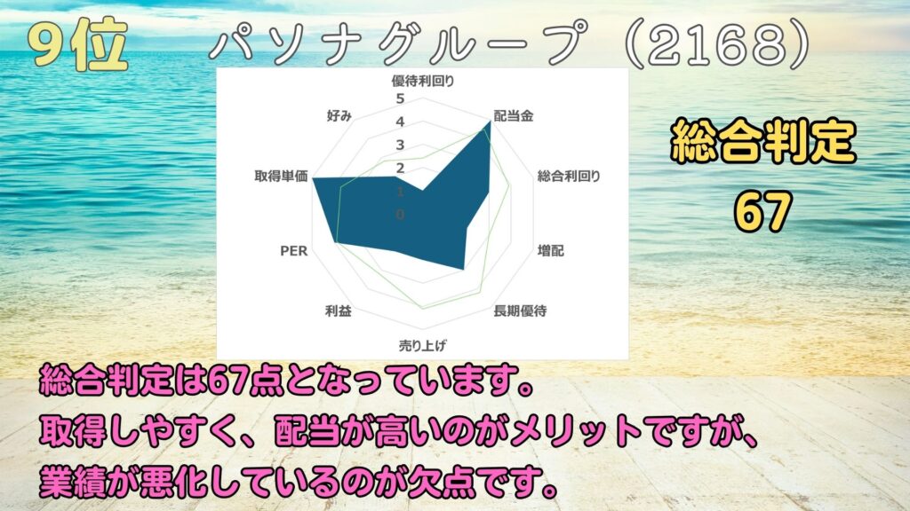 利回りや業績などを判定し、独自でランキングを作成しました。