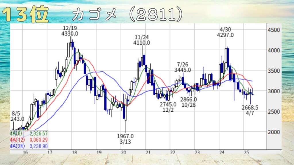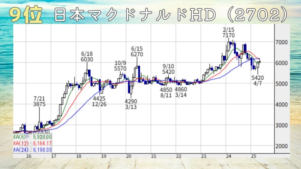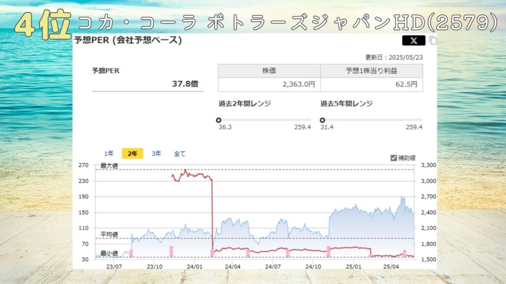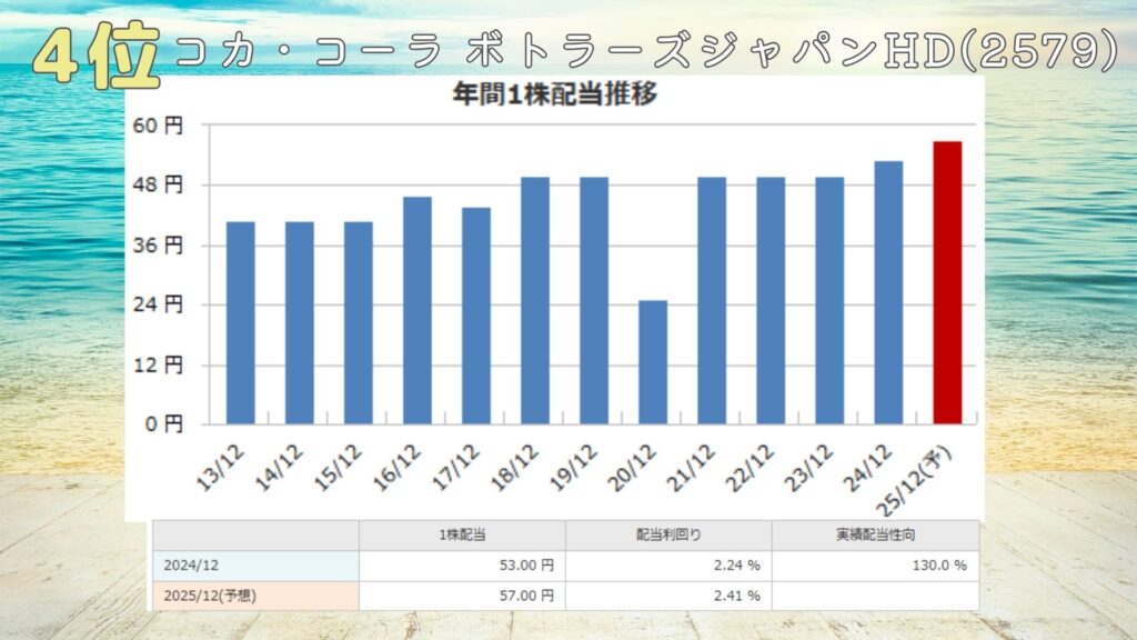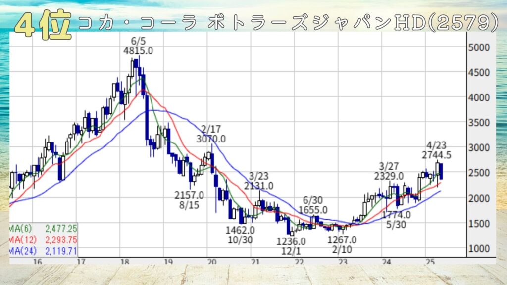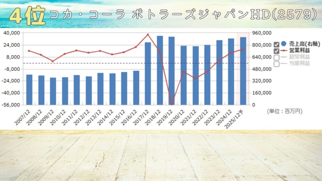 4位はコカコーラ、ボトラーズジャパンホールディングス。