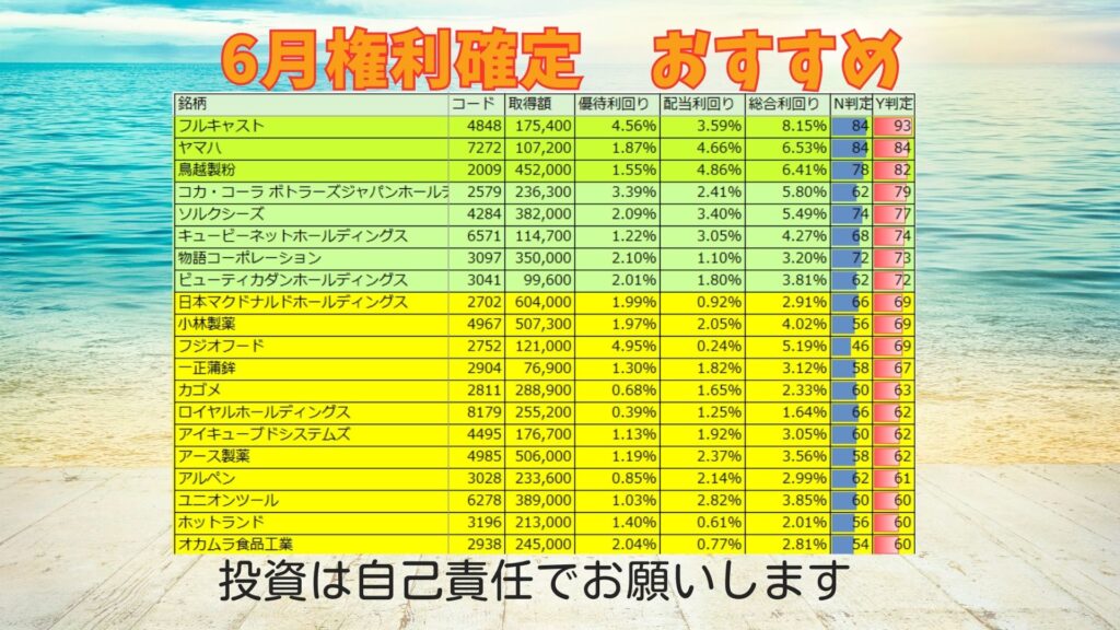 利回りや業績などを判定し、独自でランキングを作成しました。
