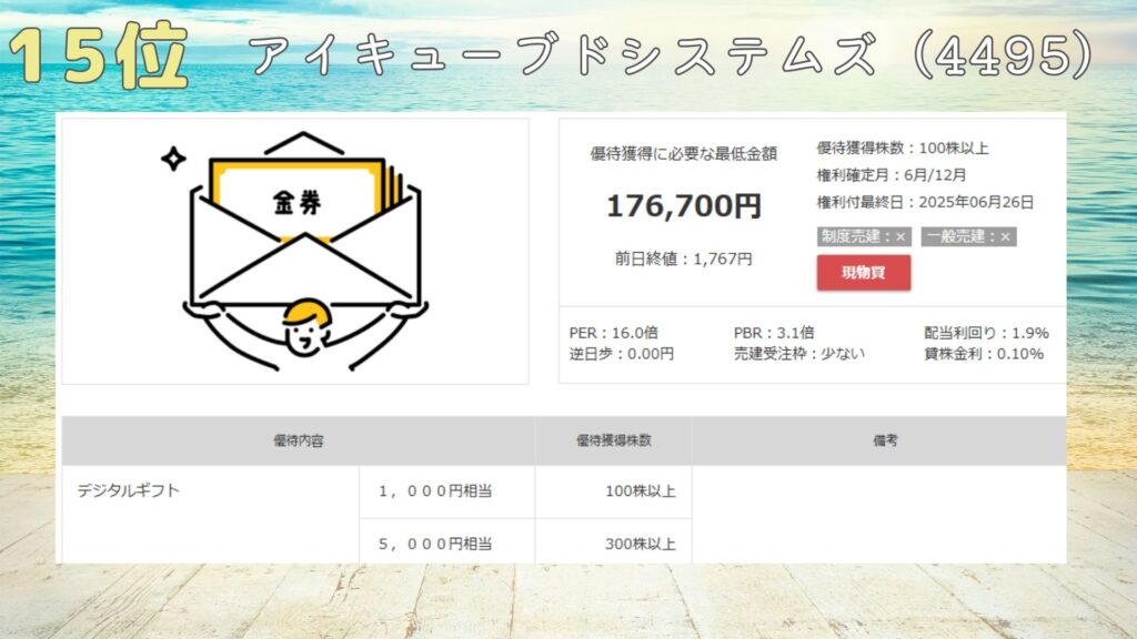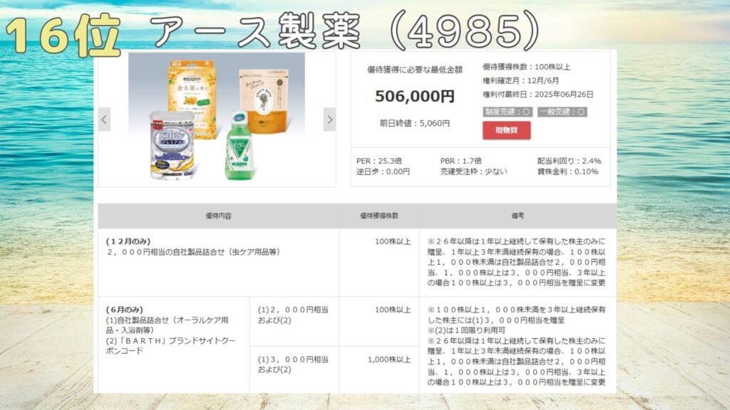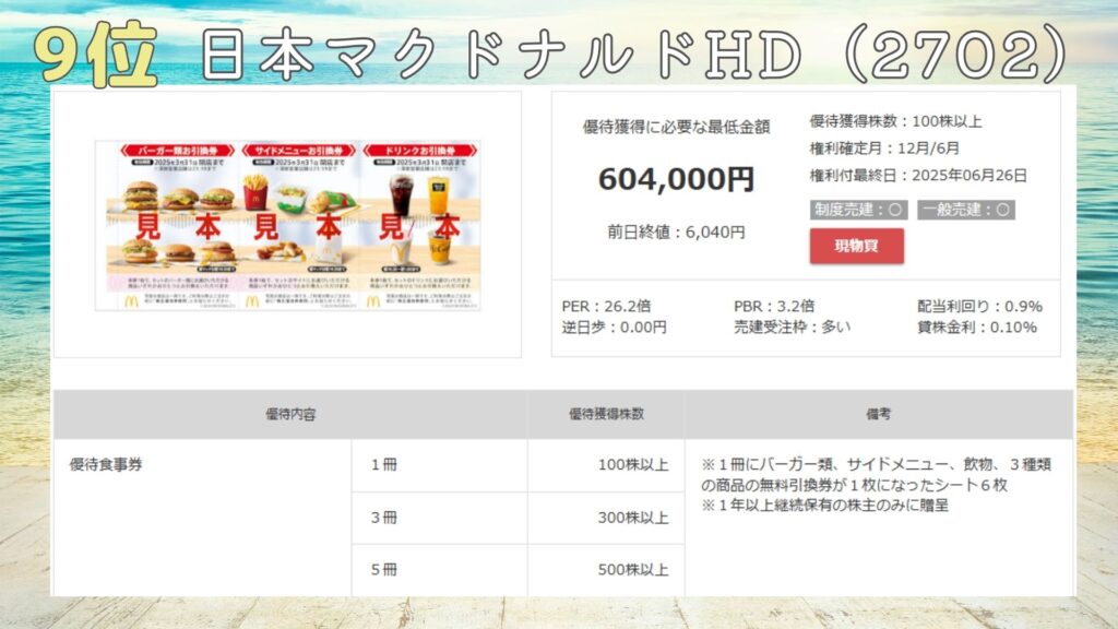 6月権利確定の株主優待銘柄、トップ20を紹介します。