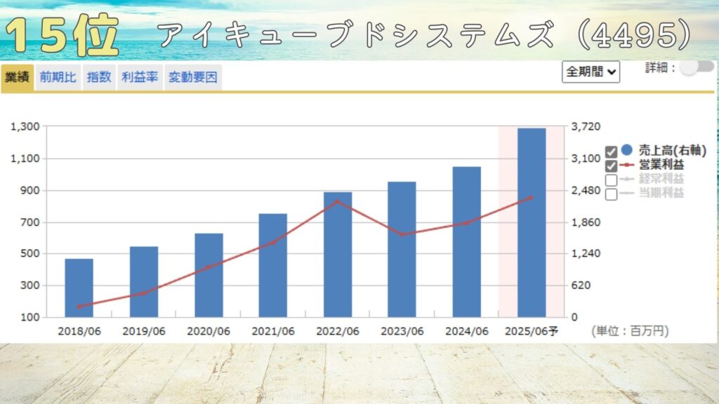 売り上げも利益も徐々に拡大が続いてて順調だよ。