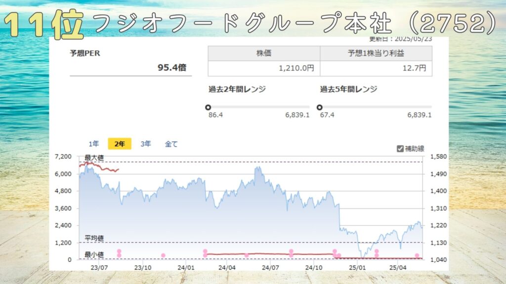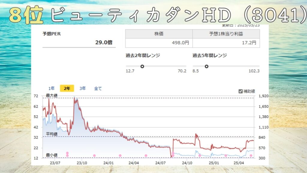 もうすこし割安なときもあったけど、過熱感は無いね。