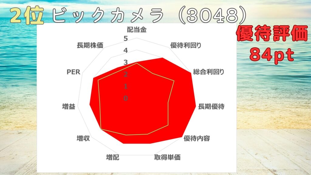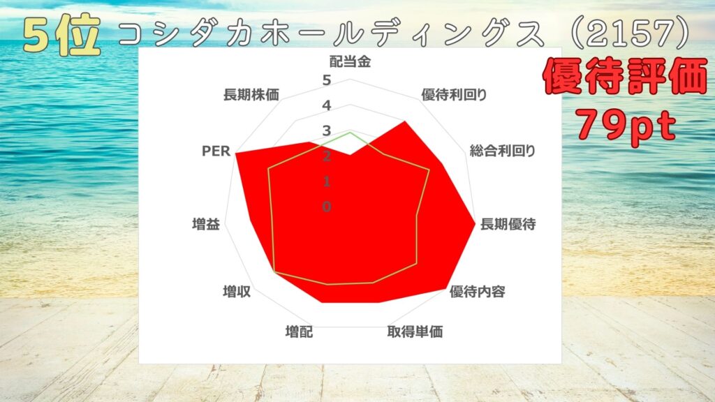 優待投資評価は84ポイントで、星5つだよ。