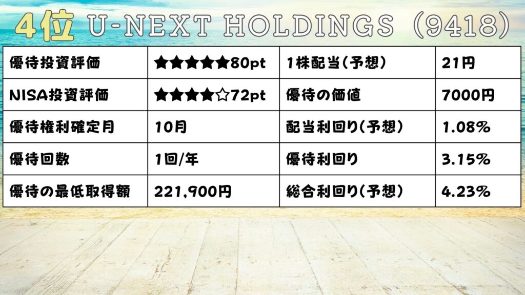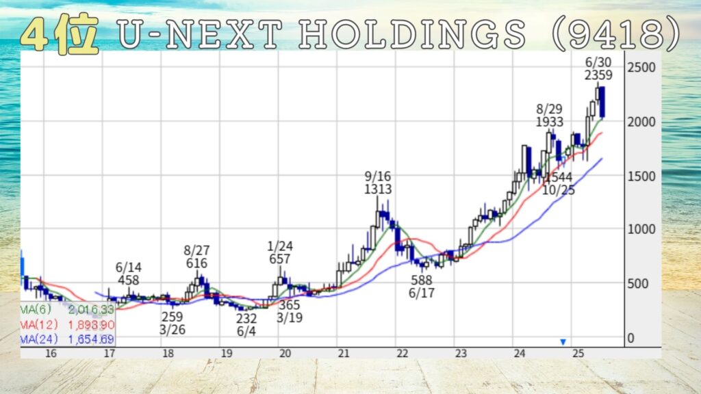 4位はU-NEXTホールディングス