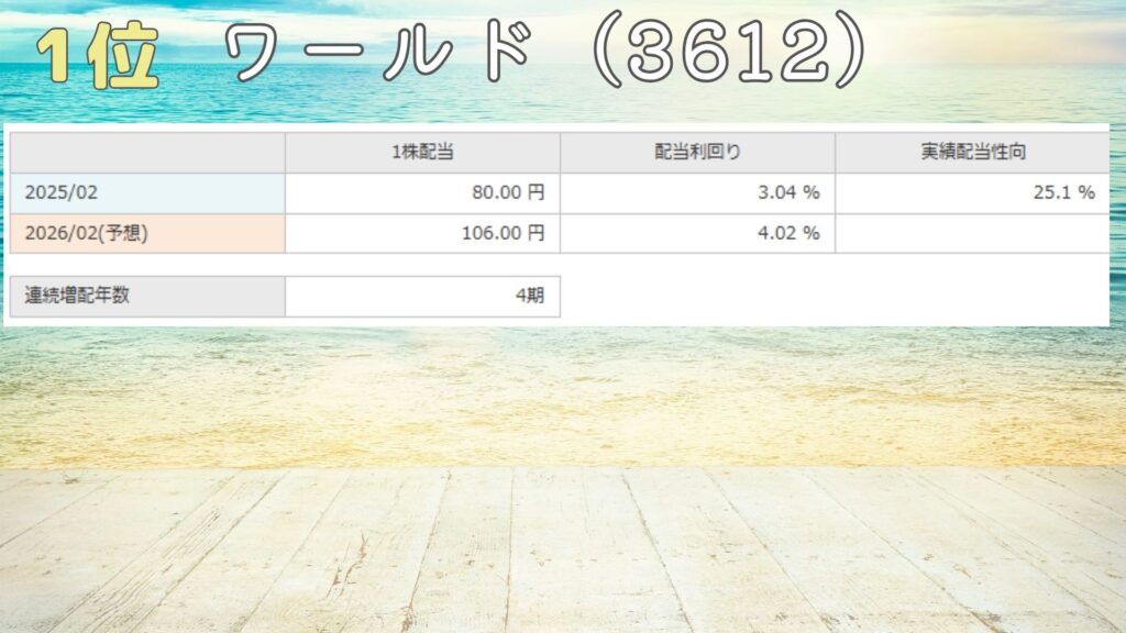 増配の勢いがあるから、長く持ってると利回りが上昇するね。