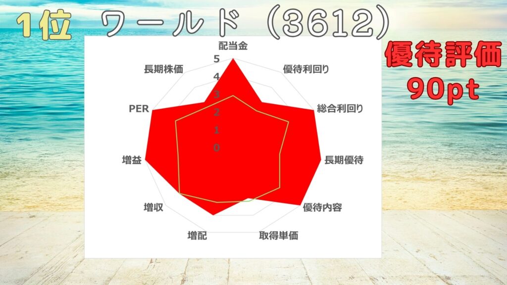 優待投資評価は90ポイントで、星6つだよ。