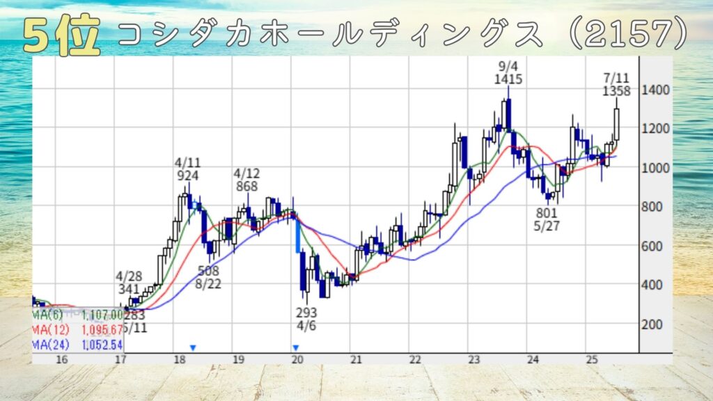 5位はコシダカホールディングス