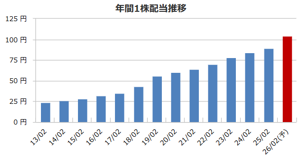 配当利回りは高め。連続増配が続いており、株主還元には積極的。