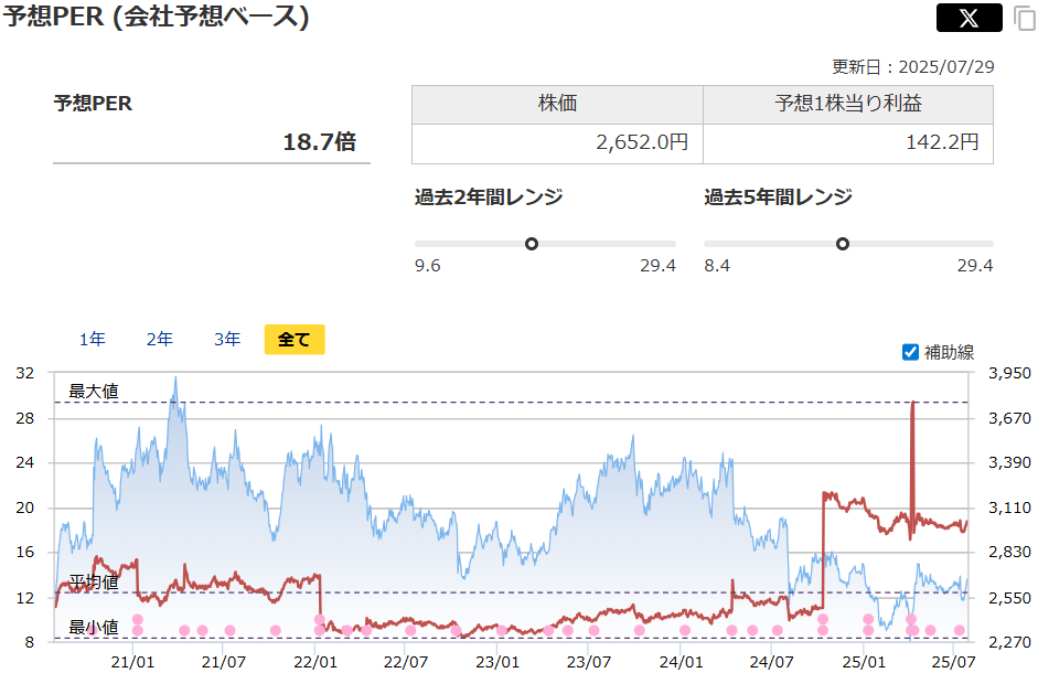 PERは18.7倍と標準的な水準
